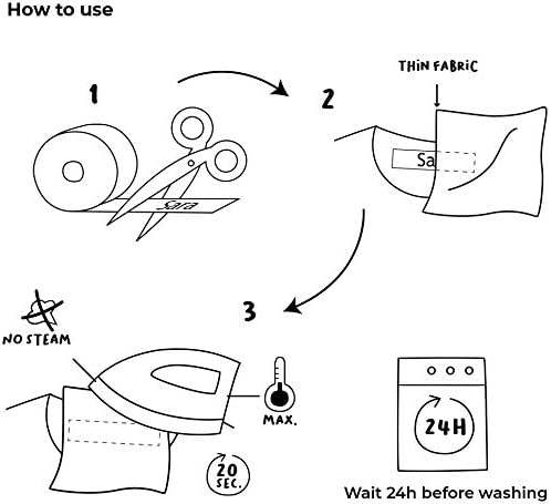 - π Easy Application Process: Simply cut the label, place it on the garment, protect with a fine cloth, and iron at maximum temperature without steam for 20 seconds. Wait 24 hours before the first wash, and you're good to go!